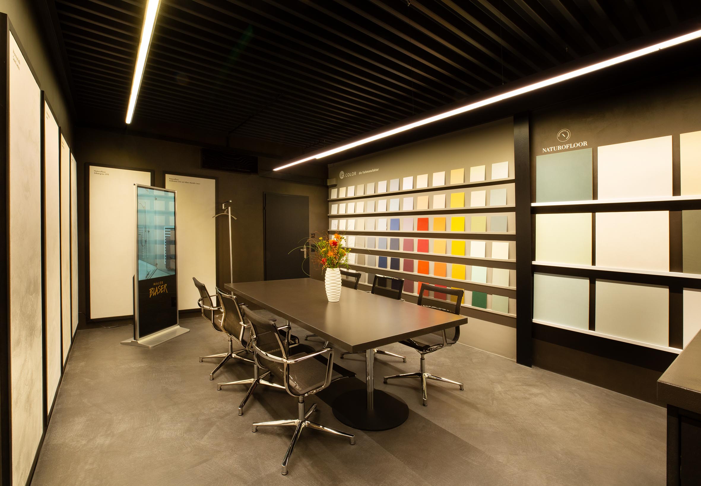 Im Showroom präsentieren wir rund 200 Musterplatten aus der Farbtonkarte von Naturofloor, die Ihnen eine Übersicht über die Farb- und Gestaltungsmöglichkeiten bieten. Darüber hinaus stellen wir den Terrazzofino Bodenbelag aus, der durch seine besondere Ästhetik und Qualität überzeugt.